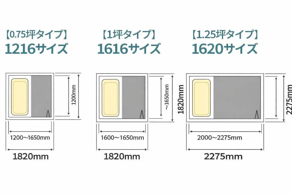ユニットバスの「1616」「1620」という表記は、浴室の内寸(約)をデシメートルで表したものです。