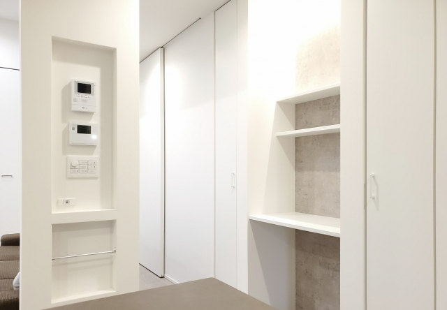 壁を少しへこませ、その中に照明スイッチや給湯リモコン、インターホンなどをまとめて配置するあのスペースですね。