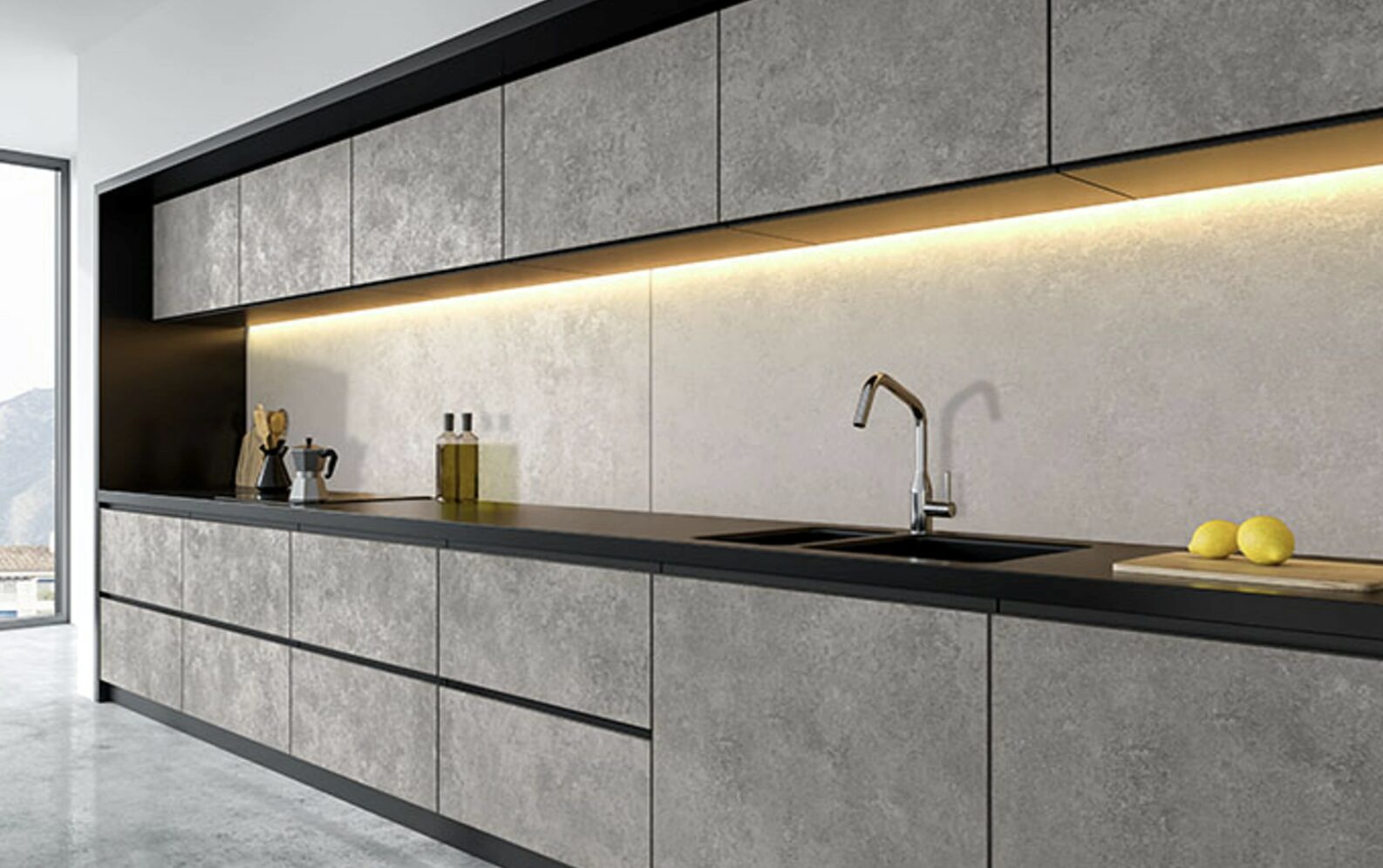 一般的なキッチンパネルは無地のホワイトが多く、どうしても“普通”の印象になりがちです。しかし、セラールは石目柄やモルタル調、木目調など、インテリア性の高いデザインが豊富。